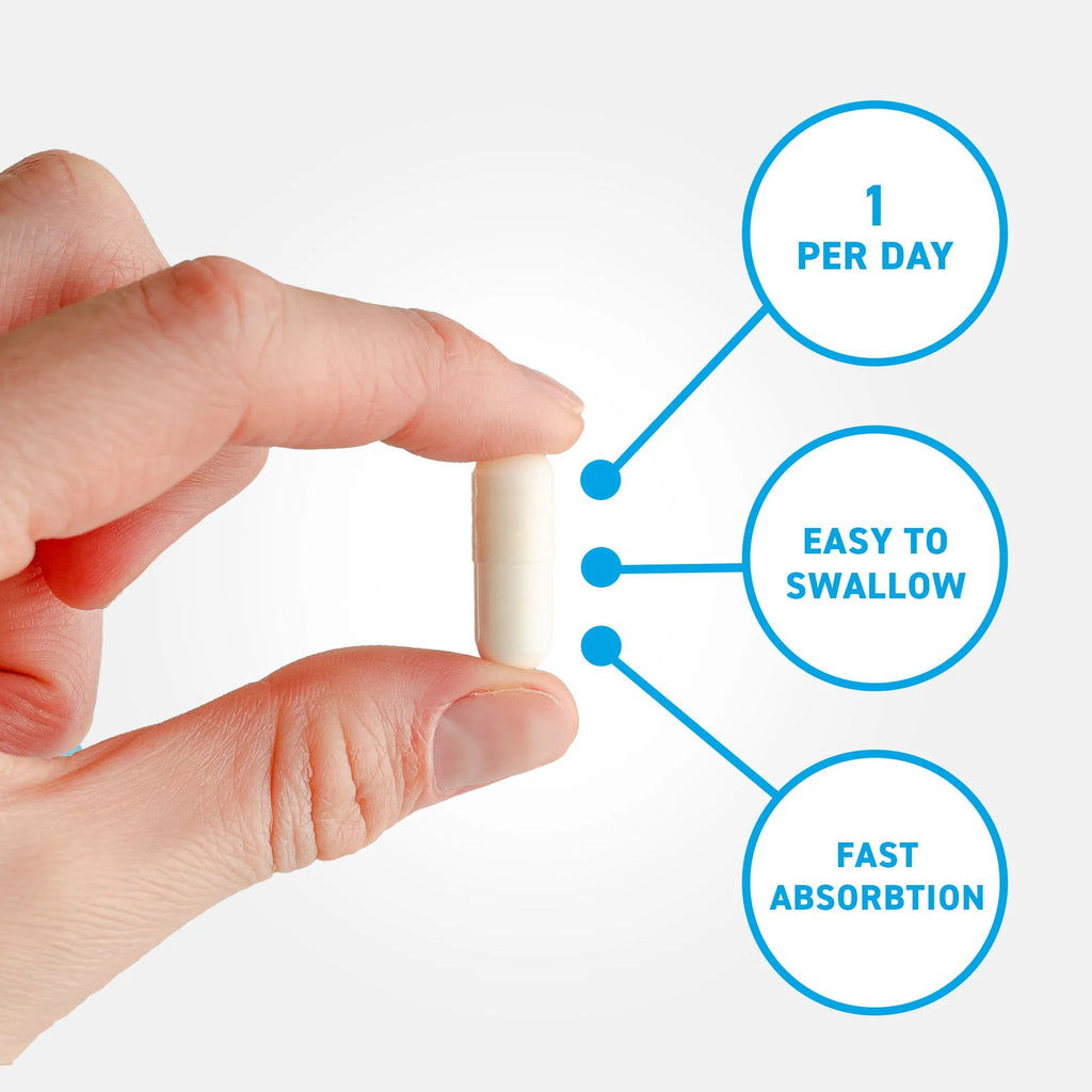 Calcium plays a key role in muscle function and helps to keep your bones resilient, while vitamin K2 works to guide calcium to where it’s most beneficial – supporting long-term bone health. This highly bioavailable formula ensures your body absorbs what it needs, making each dose as effective as possible.