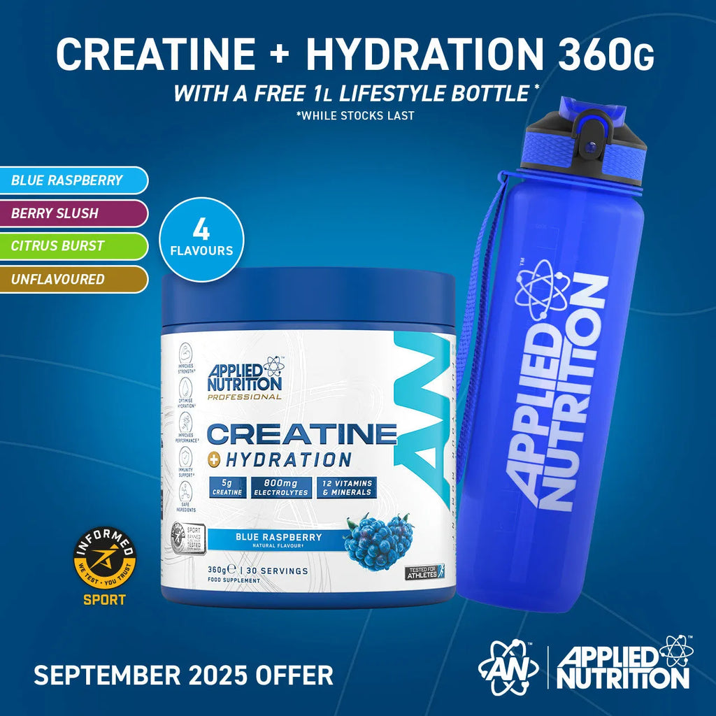 Unlock peak daily performance with Creatine + Hydration, a premium formula from Applied Nutrition combining the proven benefits of Creatine Monohydrate with advanced hydration support.