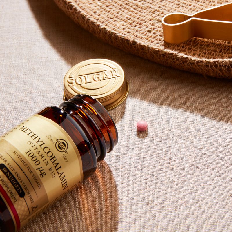 Vitamin B12 is naturally found in fish, dairy produce, organ meats, beef, pork, fortified foods and is a water-soluble vitamin. Vitamin B12 is necessary to maintain energy and general vitality and has numerous health benefits. Solgar's Methylcobalamin Nuggets are taken sublingually (dissolved under the tongue), which means the B12 bypasses the stomach and is absorbed directly into the blood.